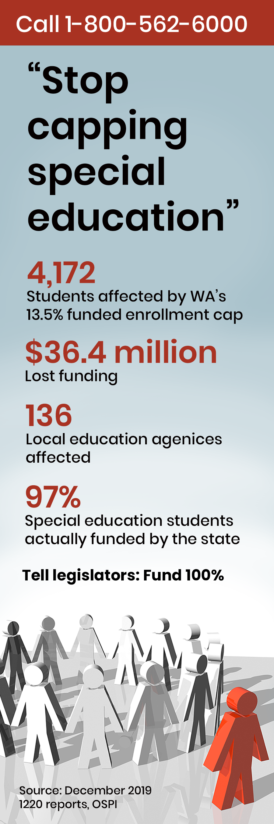 - Washington arbitrarily caps special education costs. If too many students in a community are enrolled, funding is cut off.